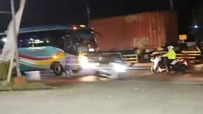 "Saat di depan Rest Area Gunung Gedangan, dia (bus) lambung kanan, tidak mau mengantre. Saat itu kereta mau lewat," jelasnya kepada wartawan di Mapolres Mojokerto Kota, Jalan Bhayangkara, Kamis (17/7/2025).