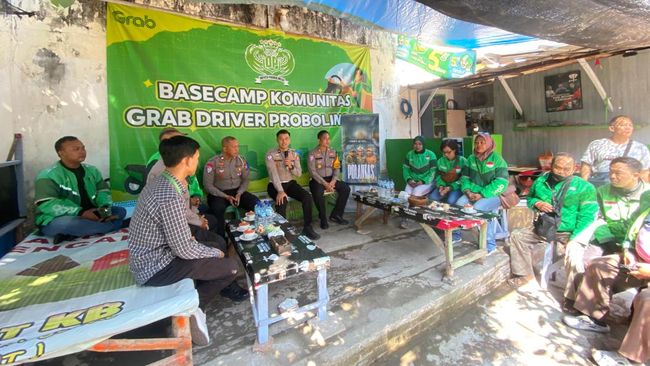 Korlantas Polri dan Satlantas Polres Probolinggo Kota menggelar kegiatan nyangkruk bareng bersama komunitas ojek online (ojol) di Kota Probolinggo di Museum Kota Probolinggo, Kamis (24/7/2025) pagi.