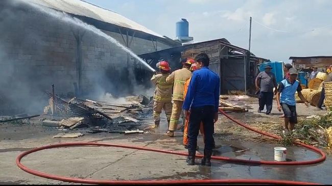 Sebuah gudang semi permanen kawasan Pelabuhan Perikanan Mayangan, Kota Probolinggo, terbakar. Gudang tersebut merupakan tempat penyimpanan keranjang ikan (bajong).