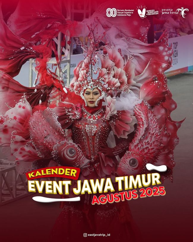 Memasuki bulan kedelapan tahun 2025, geliat pariwisata, seni, dan budaya di Jawa Timur kembali menggema lewat deretan event seru. Bulan Agustus menjadi momen istimewa karena seluruh masyarakat Indonesia merayakan hari ulang tahun (HUT) ke-80 Kemerdekaan RI pada 17 Agustus 2025.