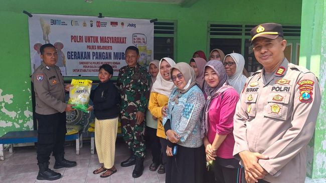 Polres Mojokerto menggelar gerakan pangan murah (GPM) untuk menjaga daya beli masyarakat. Pada tahap awal hari ini, 2 ton beras SPHP ludes terjual.