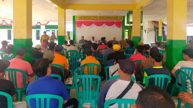 Dikarenakan tidak dibolehkan masuk ke lapangan, akhirnya masyarakat datang ke kantor desa. Mereka hendak menyampaikan aspirasi dan difasilitasi oleh pihak Muspika setempat.
