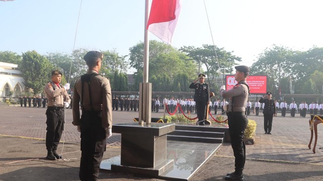 Polres Pasuruan menggelar upacara peringatan Hari Ulang Tahun (HUT) ke-80 Kemerdekaan Republik Indonesia di halaman Mako Polres Pasuruan. Kapolres Pasuruan AKBP Jazuli Dani Iriawan menyampaikan pesan persatuan dan keamanan dalam upacara ini.