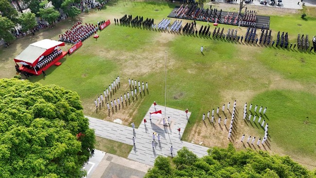 Bertindak sebagai petugas pengibaran bendera antara lain Jasmine Azzahra Adya Putri (pembawa baki), Revalizha Nazzar Syahzidane (pengerek bendera), Andreas Oktaviani (pembentang bendera), Andrian Edi Chandra (pengulur bendera), dan Dinar Ayu Wulandari (pemberi aba-aba).