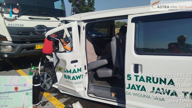 Kepala Departemen Operasi Astra Tol Jomo Zanuar Firmanto menjelaskan, mobil SMAN 5 Taruna Brawijaya melaju dari timur ke barat atau dari arah Surabaya ke Jombang. Mobil Daihatsu Gran Max nopol AG 1081 CX ini dikemudikan Fery (37).