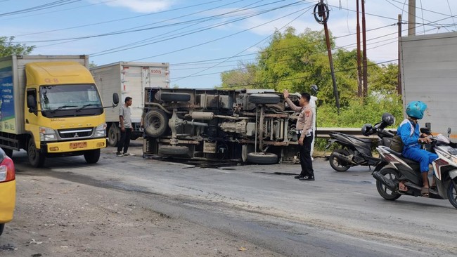 Peristiwa kecelakaan tunggal itu terjadi pada Selasa (19/8/2025) sekitar pukul 13.30 WIB. Truk bernopol W 8306 PR tersebut dikemudikan oleh Aris (38), warga Surabaya.