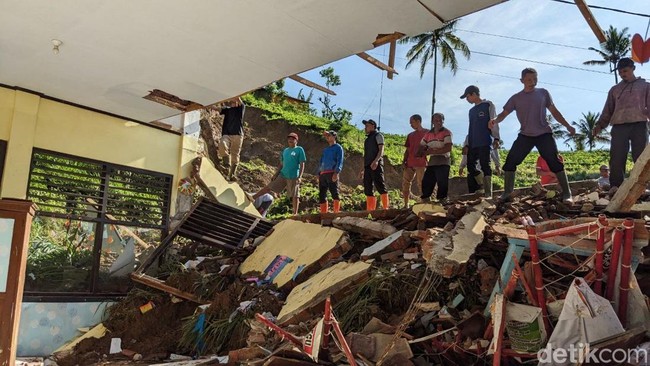 "Alhamdulillah tidak ada korban, kemarin itu kejadiannya saat pembelajaran sudah selesai. Padahal anak-anak itu biasanya berkumpul di depan perpustakaan, di situ kan ada taman. Makanya kemarin itu ketika tahu longsor ini, saya langsung menangis," jelasnya.