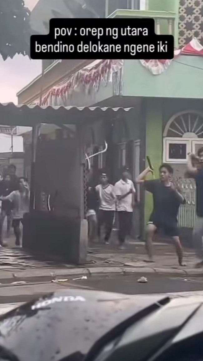Mereka saling berteriak dan terlihat membawa sajam berukuran cukup panjang yang berbentuk mirip celurit. Mereka tampak tak segan mengayunkan senjata tersebut saat saling kejar. Aksi tersebut pun membuat resah masyarakat sekitar hingga warganet.