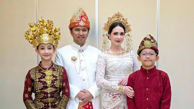 Emil Dardak dan istrinya, Arumi Bachsin, tampil dengan busana adat bertema merah putih. Keduanya kompak menggunakan baju adat dari Sumatera Selatan, Palembang. Tak hanya berdua, Emil dan Arumi juga memboyong anak-anak mereka dalam momen tersebut.