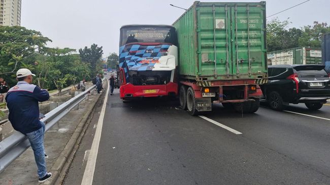 Yudho menyebut, kecelakaan di KM 8.600/B Tol Waru arah Perak melibatkan Bus AKAS bernopol N 7013 UR dengan truk traktor head bernopol B 9043 BOM.