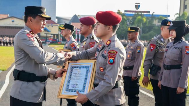 Kapolda Jatim mengganjar penghargaan kepada Bripda Doni karena sukses menyabet medali emas olahraga pencak silat di ajang Piala Kemenpora Bali Arisaka Championship 2025. Doni merupakan anggota Satsamapta Polres Mojokerto.