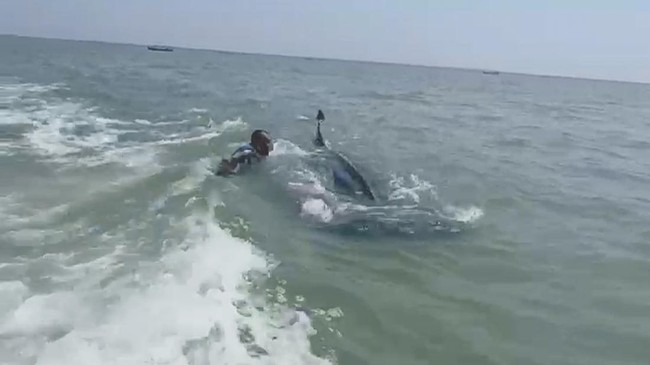 "Waktu terbaik lihat mereka pas matahari udah naik. Plankton keluar dari Sungai Porong ke permukaan laut, dan itu menarik hiu-hiu ini untuk makan. Lokasinya memang agak susah dijangkau, nggak bisa dari darat, harus pakai kapal atau jetski," jelas Weda.
