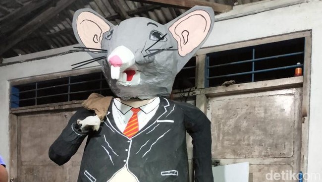 Cosplay tikus berdasi batal memeriahkan karnaval HUT ke-80 RI di di Kecamatan Tanjung Bumi, Bangkalan, Selasa (26/8/2025). Larangan kostum dilakukan atas perintah muspika, dengan dalih patung tikus berdasi itu dianggap provokatif.