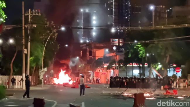Pantaun detikJatim, massa pendemo yang masih melakukan perlawanan terpantau di Jalan Basuki Rahmat (Basrah), Jalan Panglima Sudirman (Pangsud), Jalan Pemuda, dan Jalan Gubernur Suryo.