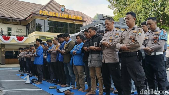 Puluhan mahasiswa yang tergabung dalam Pergerakan Mahasiswa Islam Indonesia (PMII) Cabang Lumajang, Badan Eksekutif Mahasiswa (BEM) sejumlah kampus di Lumajang bersama polisi menggelar salat gaib dan doa bersama di halaman Mapolres Lumajang.