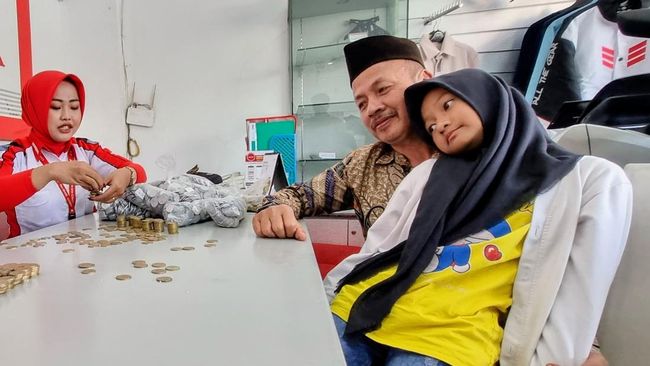 "Uang angpau lebarannya juga ditukarkan koin, katanya kalau sudah besar mau dibelikan motor," kata Sunarta.