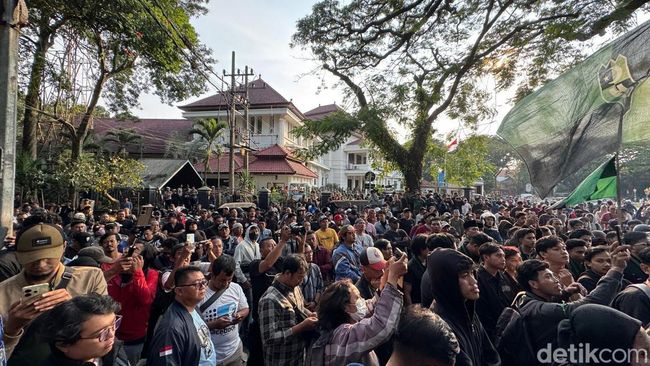 Aksi demonstrasi Himpunan Mahasiswa Islam (HMI) Cabang Malang di depan Gedung DPRD Kota Malang, Senin (1/9/2025), berlangsung damai. Demo yang hanya berlangsung kurang dari satu jam itu dikawal ketat oleh sekitar 1.000 warga Malang.