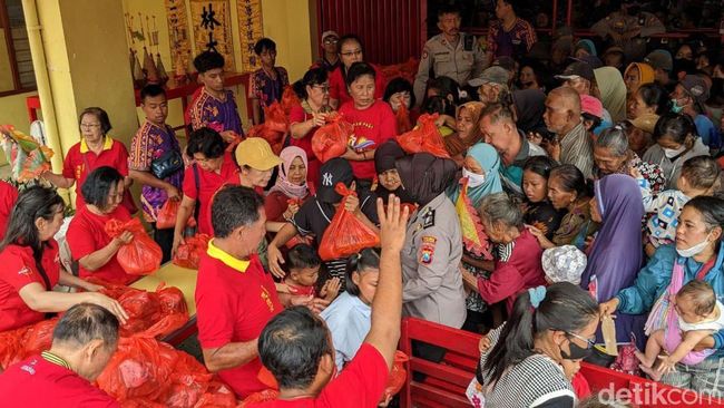 Dari pantauan detikJatim, ribuan masyarakat tampak berbondong-bondong mendatangi kelenteng untuk berburu sembako. Meski berjumlah ribuan, proses pembagian dilakukan dengan tertib.