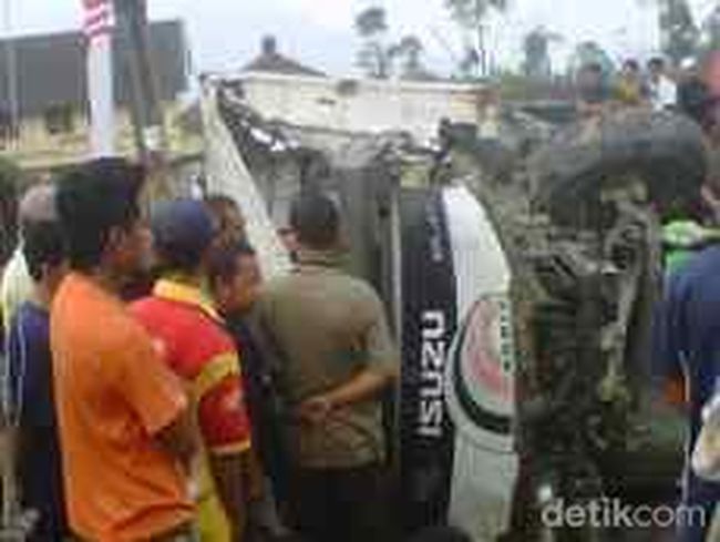 Penumpang yang masih di dalam bak pun ikut tergulung beberapa meter. Trus nahas itu baru berhenti saat menabrak tiang listrik dari beton. Kerasnya benturan itu bahkan membuat penumpang di bak ikut terpental keluar.