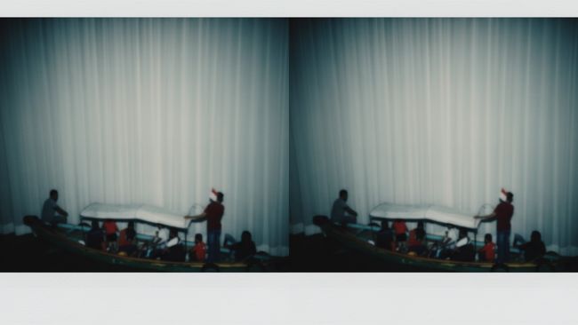 Buatlah gambar polaroid yang menangkap momen keluarga yang santai. Seorang laki-laki dewasa, seorang perempuan dewasa, dan seorang anak laki-laki kecil duduk bersama di ruang tamu. Pencahayaan berasal dari lampu gantung, menciptakan suasana hangat dan akrab. Pastikan gaya fotonya sederhana, dengan pakaian kasual, dan tambahkan efek polaroid klasik seperti sedikit buram (blur) dan butiran (grain). Wajah semua orang harus terlihat asli dan tidak berubah.