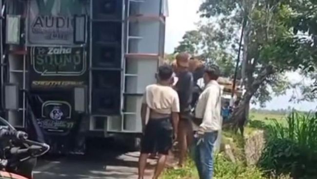 "Ketika sound itu berangkat ke rumah penyewa, aman ga nyangkut itu truk nya. Saat mau balik lagi ke barat, truk (tali track belt nya) nyangkut," ujarnya.