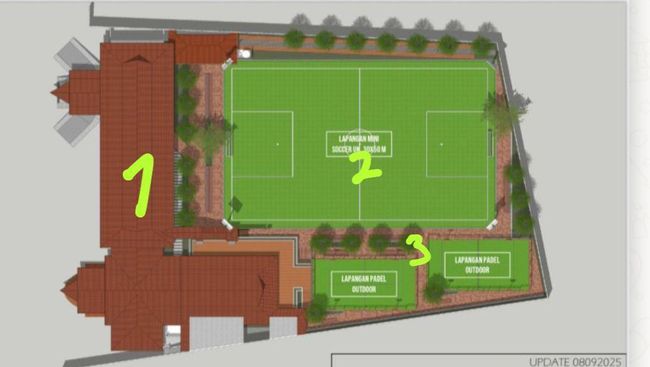 Lahan yang rencananya dipakai untuk mini soccer dan padel itu di area terbuka dengan total 2.400 m². Sedangkan total lahan di kawasan kolam renang beserta bangunannya sekitar 4.000 m².