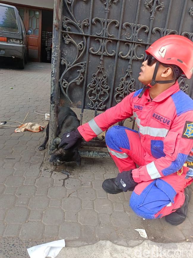 "Pagar yang menjepit anjing dipotong menggunakan cutter dan spreader hydraulic," ungkap Wasis.