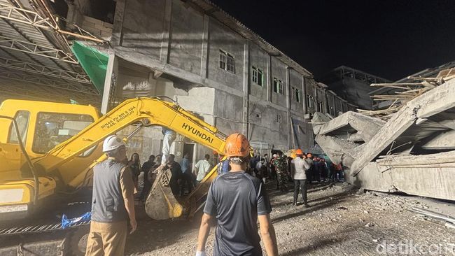Puluhan petugas masih berjibaku untuk melakukan proses evakuasi. Diduga masih ada korban yang terjebak di reruntuhan bangunan.