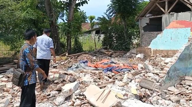 "Kebetulan waktu kejadian murid sudah mulai aktivitas belajar di kelas sebelah. Semalam gempanya keras terasa di sini sampai orang-orang keluar rumah. Bangunan ambruk sekitar jam 07:30 WIB, dan menimpa motor saya, motor Pak Topik, serta sepeda listrik milik salah satu murid," ungkap Rosyidi, warga sekitar.