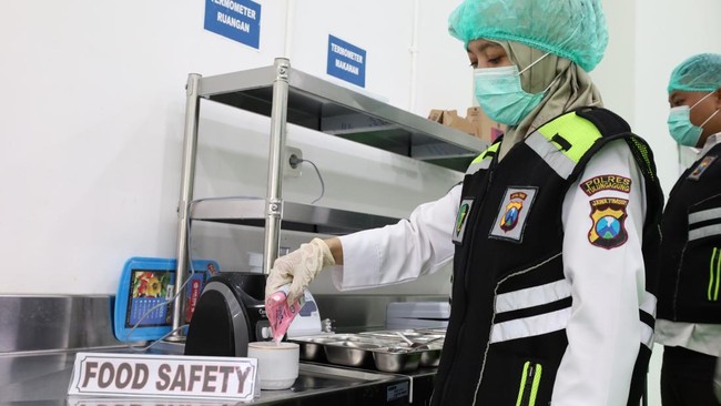 "Setiap pagi sebelum didistribusikan dilakukan security food test oleh si dokkes Polres Tulungagung dan tim RS Bhayangkara Tulungagung. Sehingga makanan yang keluar dari dapur dipastikan aman dan layak konsumsi," ujarnya.