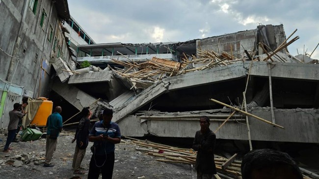 "Awal seperti ada bambu jatuh, lalu terasa seperti gempa. Seketika, bangunan langsung ambruk," kata Rizal.
