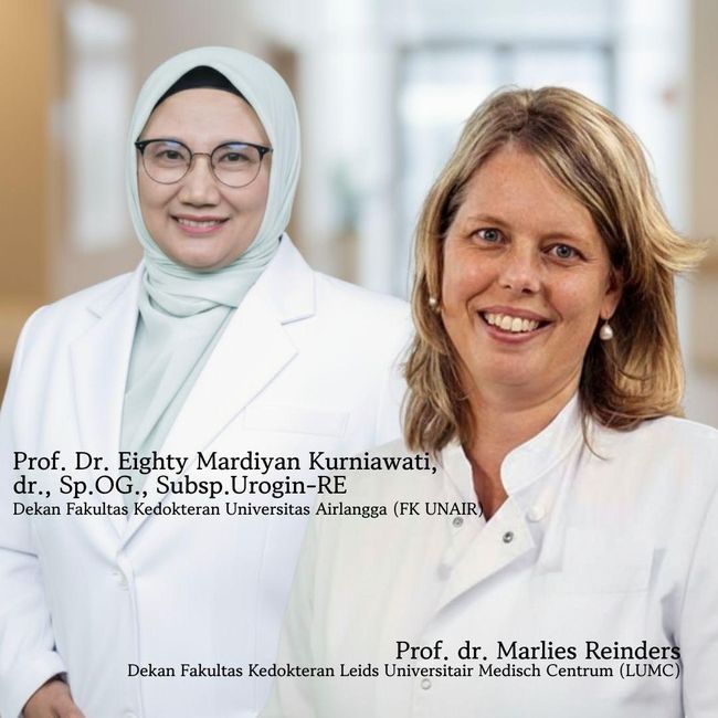 Kunjungan delegasi LUMC kali ini memiliki makna istimewa karena menjadi ajang perkenalan dekan baru dari kedua fakultas kedokteran. Prof. Dr. Eighty Mardiyan Kurniawati, dr., Sp.OG., Subsp.Urogin-RE, Dekan FK UNAIR periode 2025-2030, yang juga merupakan dekan perempuan pertama dalam sejarah FK UNAIR, akan secara resmi menyambut Prof. dr. Marlies Reinders, Profesor Ilmu Penyakit Dalam, Anggota Dewan Eksekutif LUMC, sekaligus Dekan Fakultas Kedokteran Universitas Leiden. Kedua pemimpin perempuan ini diharapkan dapat membawa semangat baru dalam mendorong kolaborasi global, khususnya di bidang pendidikan dan kesehatan.