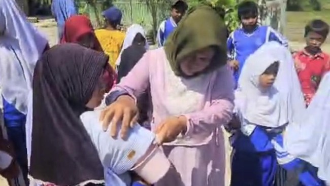"Sudah, tidak perlu menangis. Perbanyak baca selawat," kata salah seorang guru menenangkan murid-muridnya, sebagaimana dalam video yang beredar.