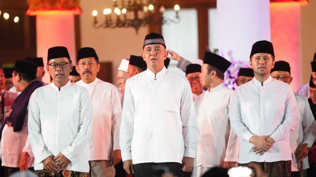 Pangdam V/Brawijaya Mayjen TNI Rudy Saladin menghadiri selawat dan Tabligh Akbar peringatan HUT ke-80 Pemprov Jawa Timur yang digelar di halaman Gedung Negara Grahadi, Surabaya, Rabu (22/10/2025) malam.