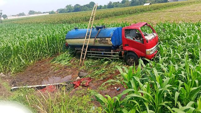 "Saya pas parkir. Mobil tangki dari barat, bagian depan sudah lolos, tinggal belakangnya masuk. Mau jalan lagi, sudah keburu ambles di sisi kiri jalan, lalu terguling dua kali ke sawah," ujar Yani.