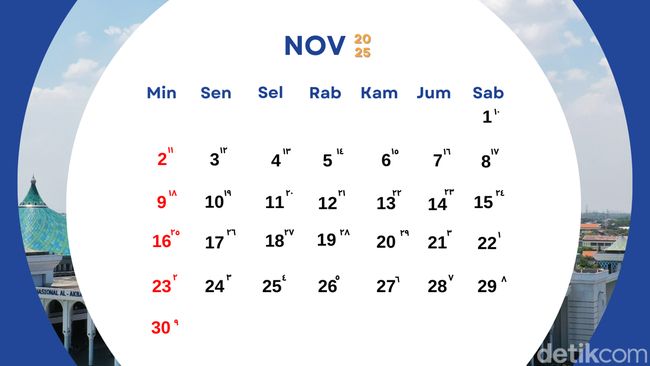 Selanjutnya, 1 Jumadil Akhir 1447 Hijriah dimulai pada 22 November 2025, dan berlangsung selama 29 hari, berakhir pada 20 Desember 2025. Berikut 30 hari dalam kalender Hijriah yang bertepatan November 2025, dirangkum dari Kemenag.