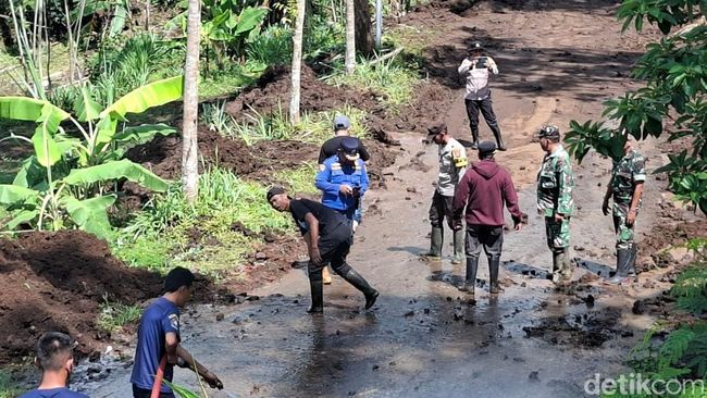 "Material tanah menutupi jalan dengan ketebalan cukup besar sehingga akses warga sempat terputus," ujar Iptu Buriantoro.