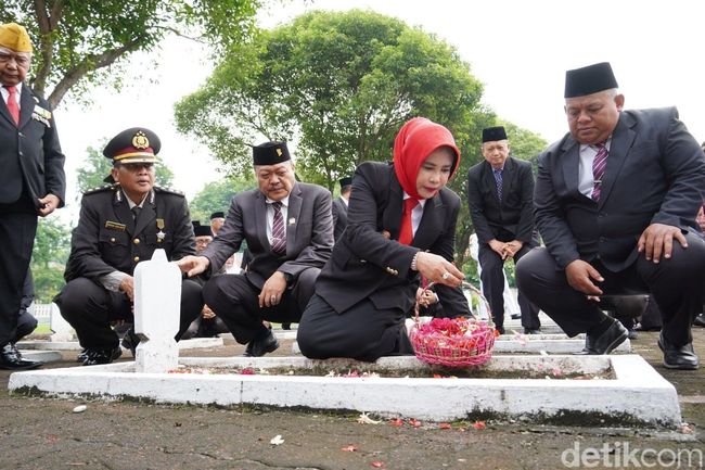 Usai upacara, kegiatan dilanjutkan dengan prosesi tabur bunga di pusara para pahlawan. Prosesi tersebut dipimpin langsung oleh Wabup Mimik Idayana bersama Forkopimda, jajaran TNI-Polri, anggota DPRD, serta para veteran.