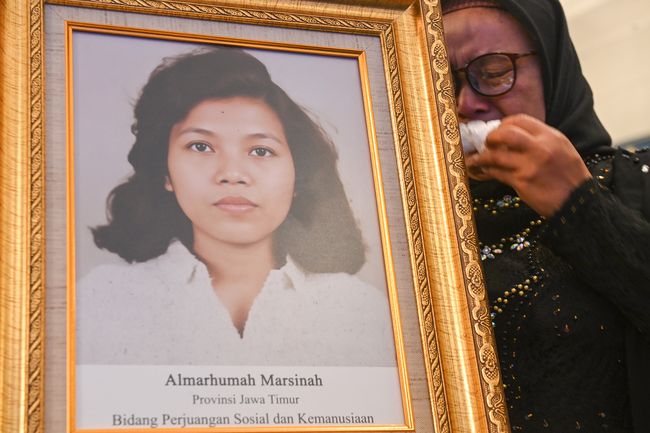 Simak Video "Video: Tangis Adik Marsinah Saat Upacara Pemberian Gelar Pahlawan Nasional"