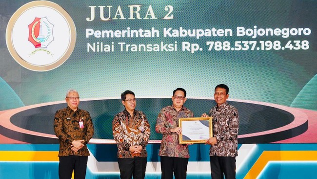Dalam penerimaan penghargaan yang digelar di Surabaya dan diterima langsung oleh Bupati Bojonegoro Setyo Wahono. Pemkab Bojonegoro berhasil meriah juara dua dengan total transaksi yang tercatat mencapai Rp 788.537.198.438.
