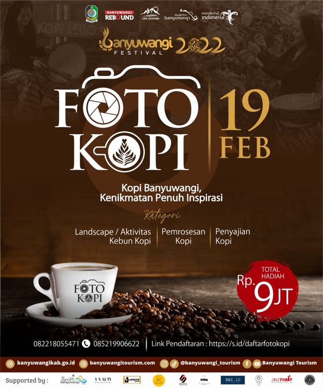 Untuk mempromosikan kopi khasnya, Dinas Kebudayaan dan Pariwisata (Disbudpar) Kabupaten Banyuwangi menggelar lomba foto tentang kopi. Kegiatan ini bertajuk Festival Fotokopi 2022.