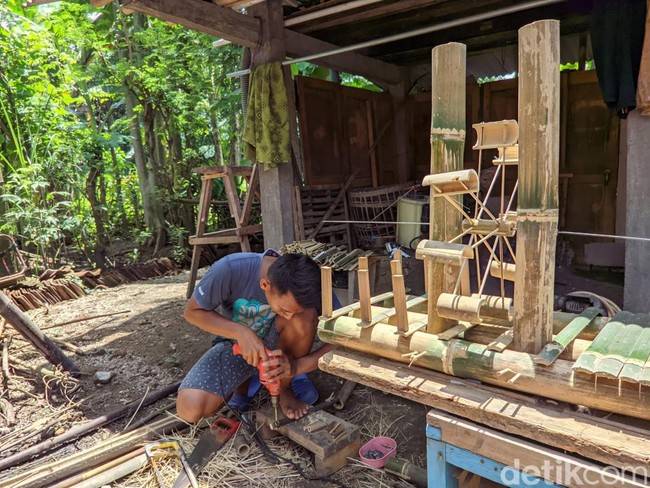 "Awalnya saya iseng bikin untuk miniatur kincir air buat kolam, ada sisa bambu. Saya manfaatkan," tutur Ari kepada detikJatim, Senin (13/2/2022).
