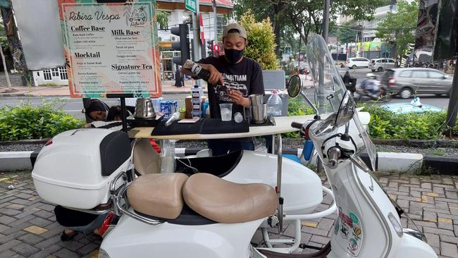 Salah satu pelaku UMKM minuman Ribira Coffee, Rizky Rahman.Dengan event G-Market Festival bisa membantu perekonomian usahanya saat Surabaya kembali naik ke PPKM level 3.