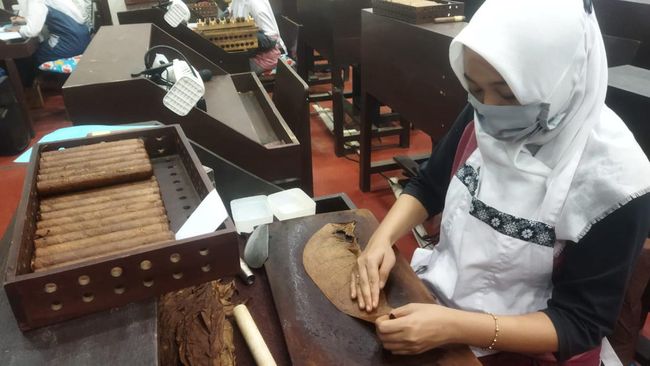 "Jadi ada desertasi dulu, produk apa yang dibutuhkan untuk pembuatan. Juga seleksi, termasuk dari warna daun, kemudian besar kecilnya, kemudian juga mana pemilihan bahan baku untuk yang low cigar, medium cigar dan premium cigar. Itu juga butuh proses desertasi. Dari proses desertasi, pembuatan, hingga menjadi cigar, itu membutuhkan waktu sampai 2 bulan," terang Iman.