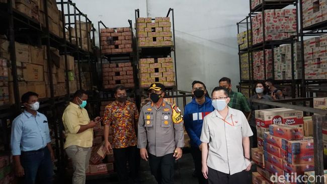 Sore ini polisi juga ikut mengecek stok minyak goreng kemasan di distributor, PT Inti Niaga Jaya Karya, Jalan RA Basuni, Desa Japan, Kecamatan Sooko. Di gudang ini, petugas menemukan stok sekitar 1.200 dus atau 14.000 liter minyak goreng kemasan.