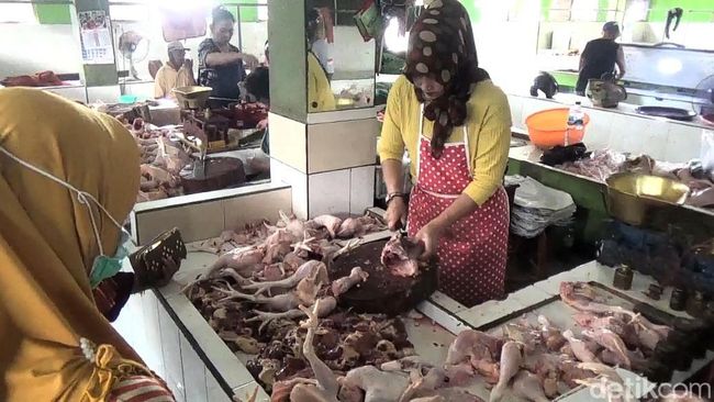 Salah seorang pedagang daging ayam Marfuah, mengatakan saat ini 1 kilogram daging ayam dijual Rp 33 ribu, dari harga sebelumnya Rp 30 ribu/kg.
