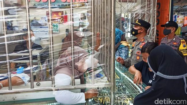 Beberapa toko emas terlihat dipenuhi masyarakat yang berbelanja perhiasan. Tak sedikit mereka melihat-lihat perhiasan yang berada di etalase.