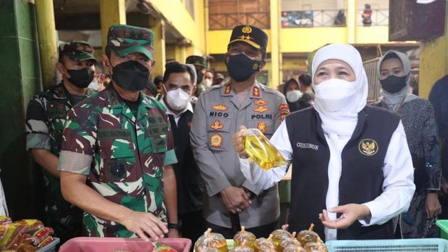 Khofifah ingin memastikan alur distribusi, stok, dan harga minyak goreng (migor) curah yang dijual pedagang di pasar terjangkau. Menurut Khofifah, harga migor curah mulai menurun bahkan sudah ada yang menjual dengan harga sesuai harga eceran tertinggi (HET) yaitu 15.500 per Kg.