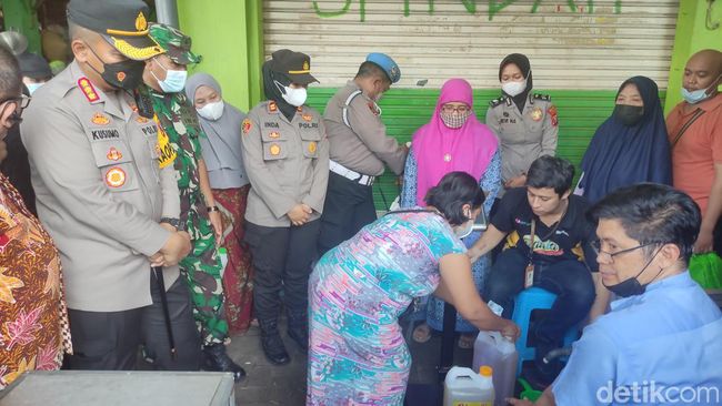 Untuk menstabilkan harga migor, polisi pun menggelar operasi pasar untuk pedagang dan masyarakat. Disediakan ribuan liter minyak goreng yang dijual sesuai HET yakni Rp 14 ribu/liter atau Rp 15.400/kilogram.