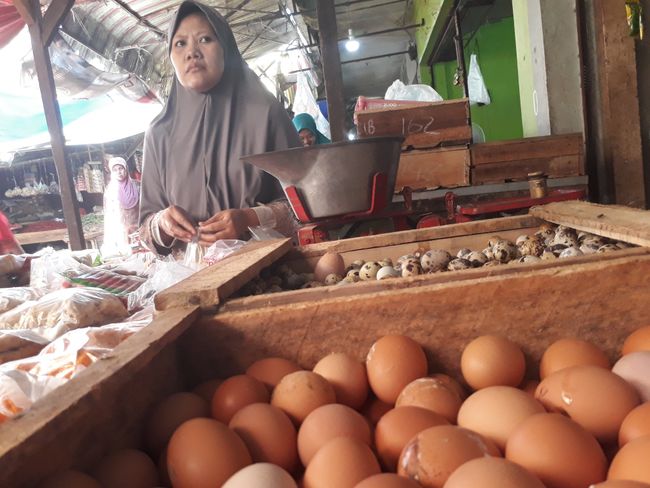 "Tiga hari lalu telur masih Rp 26 ribu/kg, sekarang sudah Rp 28 ribu. Harga lainnya juga naik. Saya belum bisa menaikan harga makanan," kata Restu Ervalia, pedagang makanan.